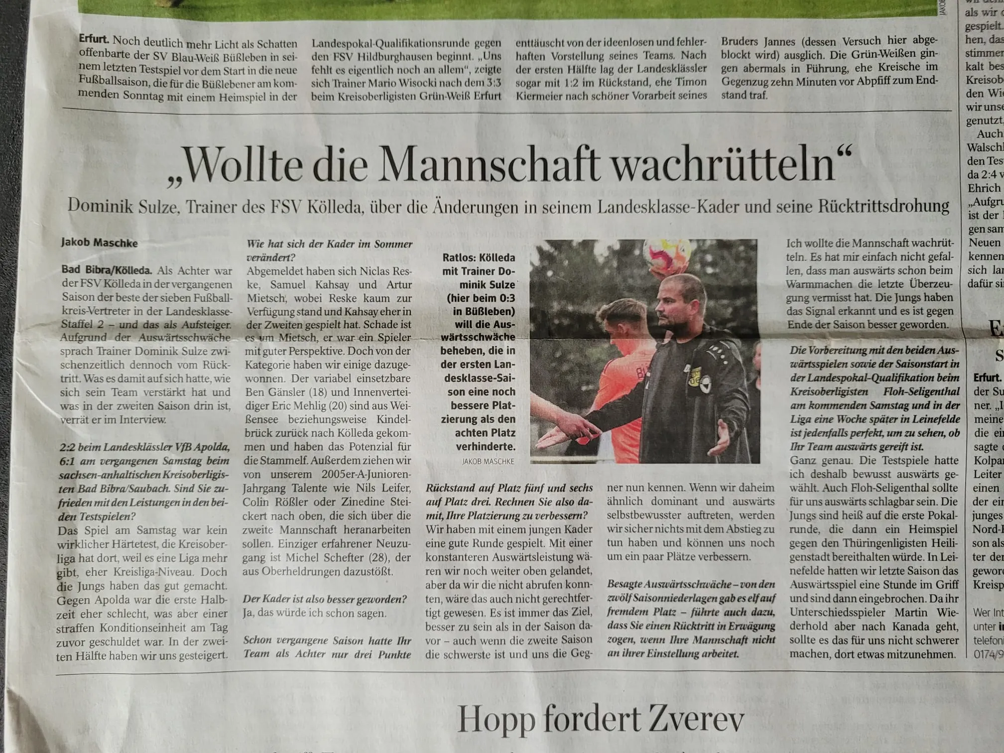 Kurz vor dem Saisonstart, hat die TA den Chefcoach interviewt. Online findet ihr den Artikel hier.