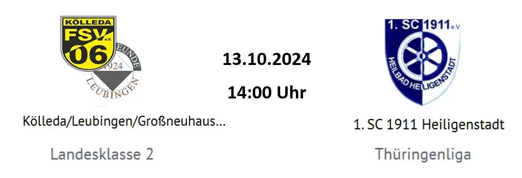 Unsere Achtelfinalbegegnung gegen den 1.SC 1911 Heiligenstadt wird am Sonntag den 13.10. ausgetragen. Das letzte Achtelfinale welches wir in Kölleda austragen durften, verloren wir mit 0:4 gegen Fahner Höhe.