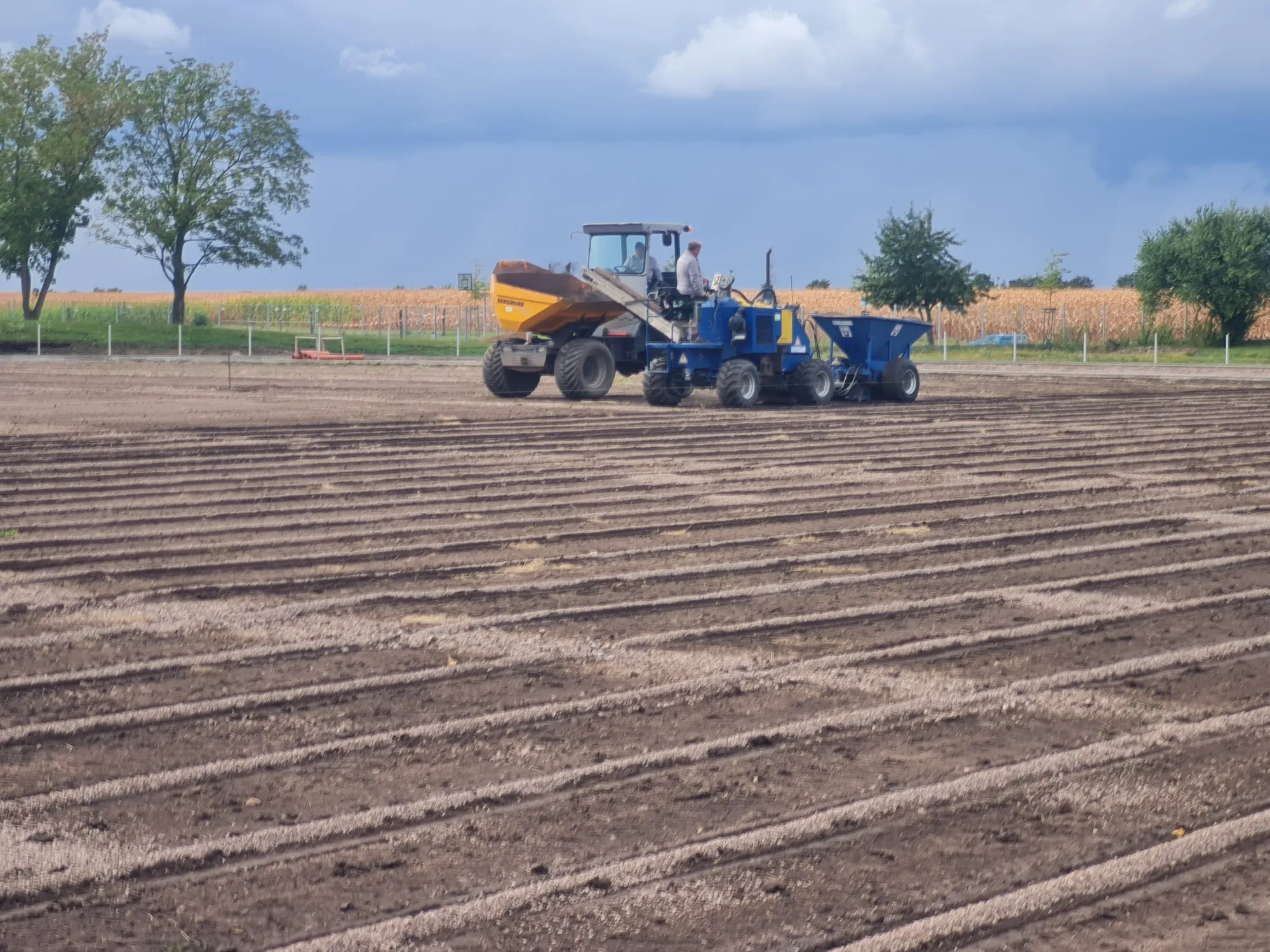 Diese hat man dann auch gleich gesetzt (Hintergrund) und auf dem Platz liegt der Mutterboden schon