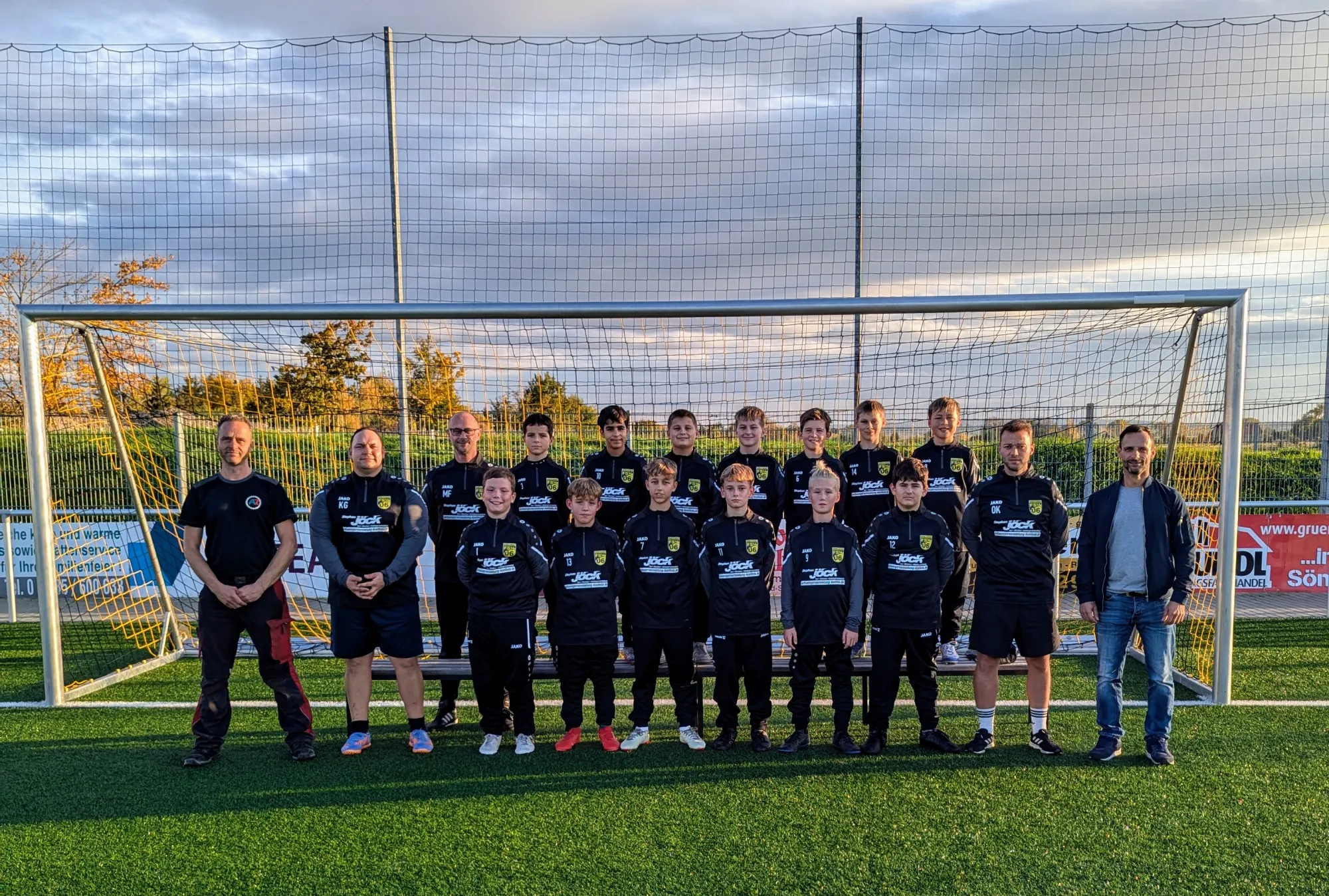 Vor dem gestrigen Training bekamen unsere D-Junioren neue Präsentationsanzüge überreicht und sind damit pünktlich zum Beginn der kalten Jahreszeit perfekt ausgestattet. Zur Verfügung gestellt wurden die Anzüge von Stephan Jöck (Taxi - Kleinbus - Anhängervermietung) und Auto Röder - Fabian Schmidt. Aus den Händen von Stephan Jöck und Fabian Schmidt nahmen unsere beiden Mannschaftskapitäne Mateo Michel Friedrich und Jamie Rötting stellvertretend für die gesamte Mannschaft die Anzüge entgegen.